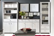В комплект входят следующие элементы: витрина REG 1W2S, тумба RTV1S, Комод KOM 4S, полка SFW/103, стеллаж REG 2S (N).