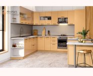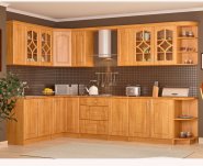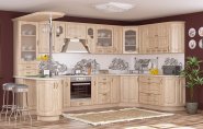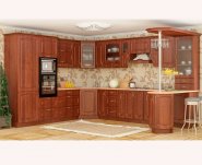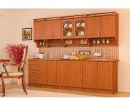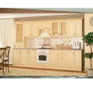 Кухня Оля от производителя Мебель-Сервис - это кухня в классических цветах груша и ольха. Отличительными чератми этой кухни являются наличие полочек под верхними шкафчиками, округлые формы на корпусе и фасадах.
