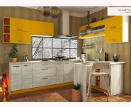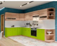 Кухня Гамма фасады ДСП - это кухня с комбинированными нижними и верхними фасадами. Нижние фасады - под натуральное дерево, верхние - очень яркие