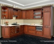 Кухня Роксана изготавливается в темном и светлом цвете с патинированием. Гарнитур изобилует декоративными деталями, характерной фурнитурой, по желанию может быть украшен карнизом