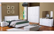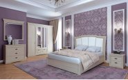 В комплект входит: тумба прикроватная - 2шт, кровать с мягким быльцем, комод, зеркало, шкаф 4Д.