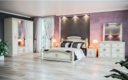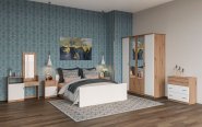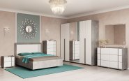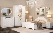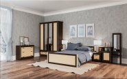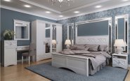 В комплект входит: комод 4s, шкаф 4D3S (с 2-мя зеркалами), кровать 160 (с вкладом, 2-мя тумбочками прикроватными и 2-мя ящиками).