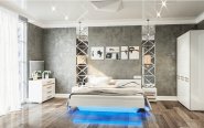 В комплект входит: прикроватные тумбочки - 2шт, комод, зеркало, кровать 1,6, шкаф 4Д (на фото шкаф 6-Д)