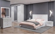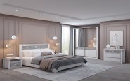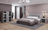 В комплект входят: комод 3Ш МЛ03, шкаф-купе 2ДВ МЛ08 серебро, кровать 160 МЛ01 под ламель, тумба прикроватная МЛ02 - 2 шт